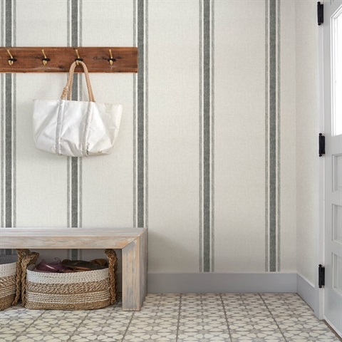 Pattern Name:Linette Black Fabric Stripe Wallpaper