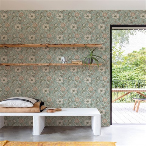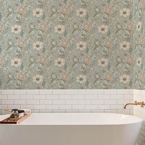 Liora Aqua Floral Trail Wallpaper