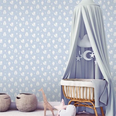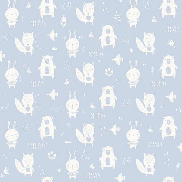 Pattern Name:Little Animal Friends Blue Wallpaper
