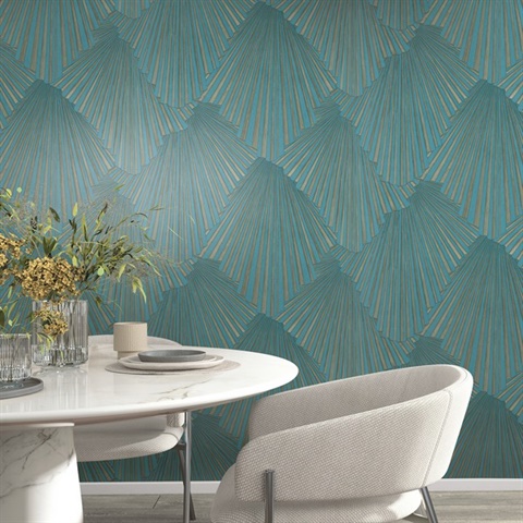 Pattern Name:Lumiere Teal Deco Geo Wallpaper