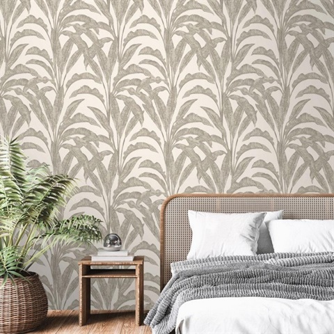 Luxe Tropical Palm Beige and Cream Wallpaper