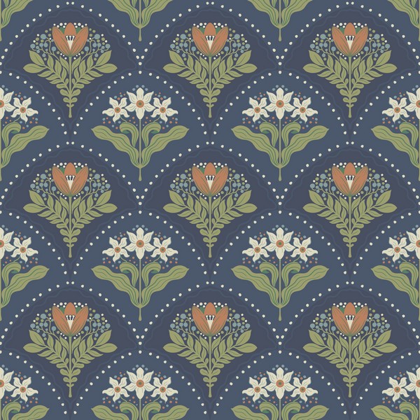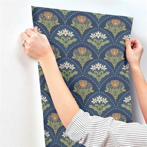 Pattern Name:Maj Navy Floral Damask Wallpaper