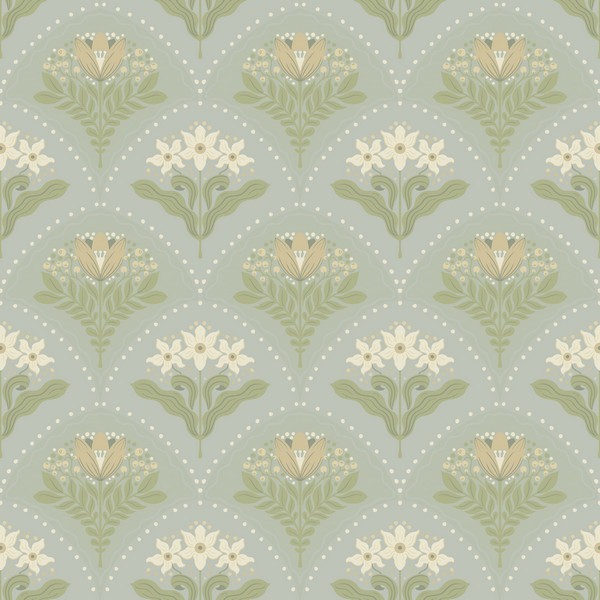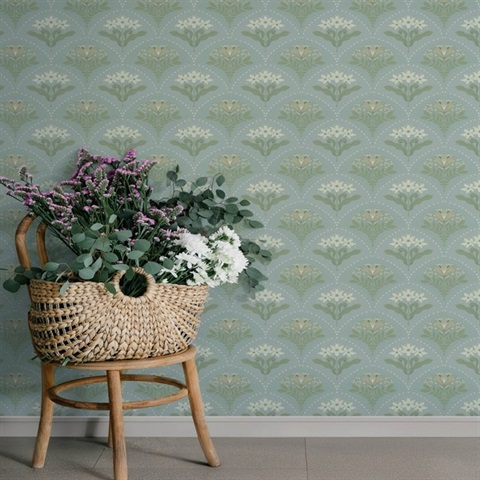 Maj Sky Blue Floral Damask Wallpaper