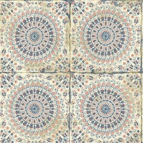 Mandala Boho Chic Medallion Orange Wallpaper , RY30706