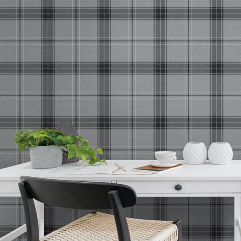 Pattern Name:Manorvale Plaid Greyscale Peel and Stick Wallpaper