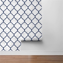 Pattern Name:Marbled Ogee Tile Royal Blue & Carrara Peel and Stick Wallpaper