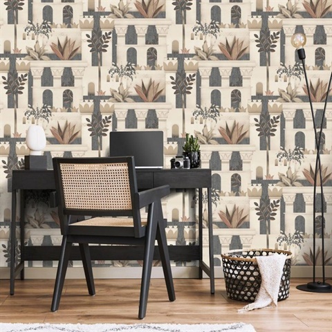 Pattern Name:Mediterranean Villa Garden Grey Wallpaper