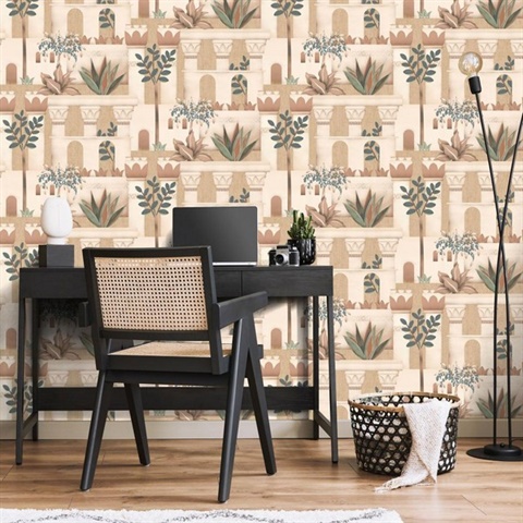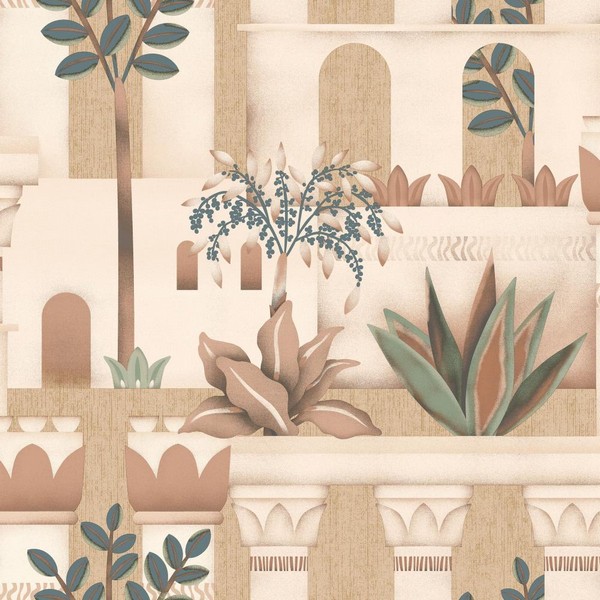 Pattern Name:Mediterranean Villa Garden Orange Wallpaper