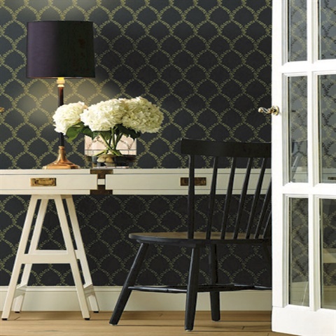 Pattern Name:Metallic Gold & Black Laurel Floral Lattice Rifle Paper Wallpaper