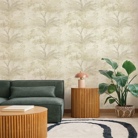Pattern Name:Mistwood Beige Forest Wallpaper