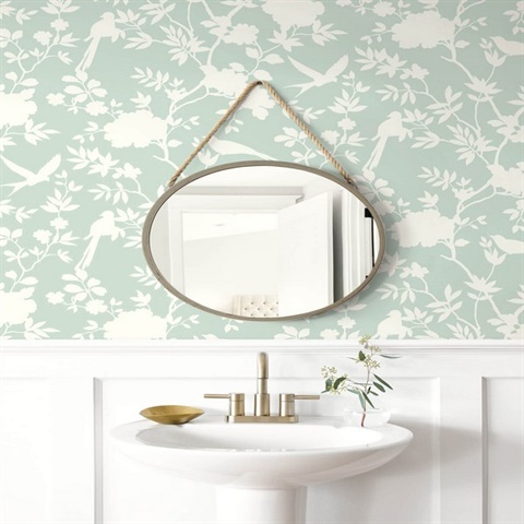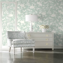 Lillian August Peel and Stick Mono Toile Chinoiserie Seaglass Wallpaper