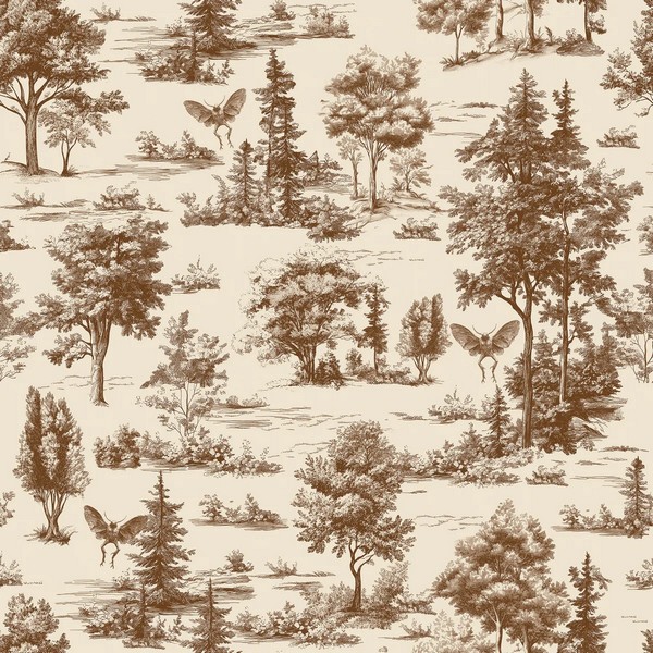 Mothman Novelty Toile Brown Peel and Stick Wallpaper