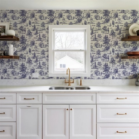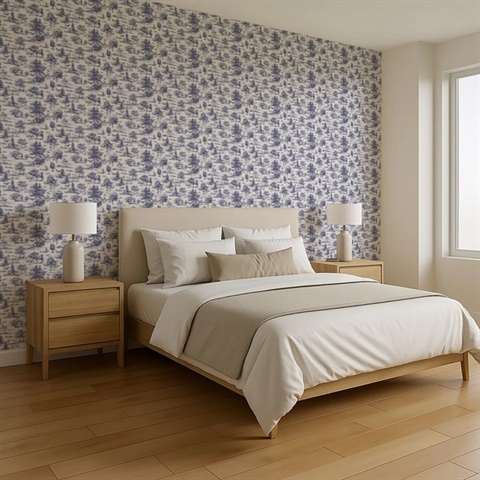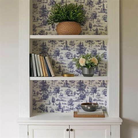 Pattern Name:Mothman Novelty Toile Navy Blue Peel and Stick Wallpaper
