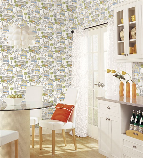 This Multi-Colored Veranda wallpaper can create a quirky and fun look for your room. The colorful sketch of the veranda can create an exuberant atmosphere for your room.