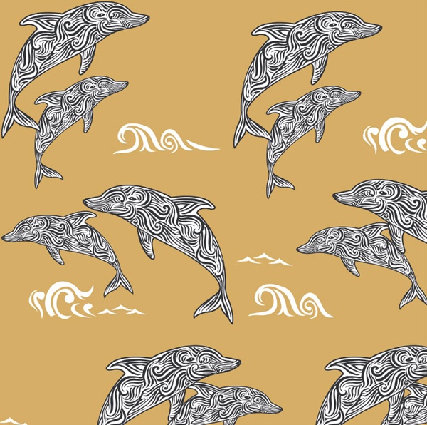 Pattern Name:Mustard Paisley Dolphin Wallpaper