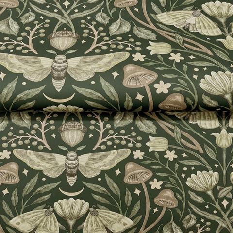 Mystic Moth Dark Green Forest Magic Wallpaper