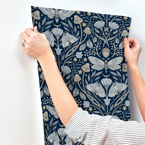 Mystic Moth Navy Blue Forest Magic Wallpaper