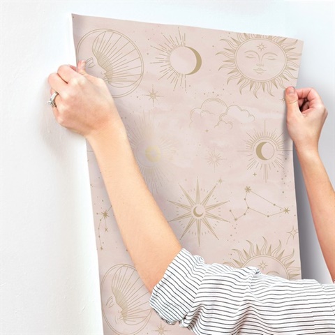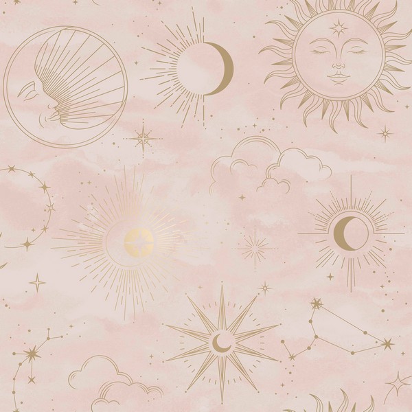 Pattern Name:Mystic Pink Celestial Wallpaper