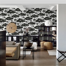 Pattern Name:Nara Stringcloth Botanical Onyx & Fog Wallpaper