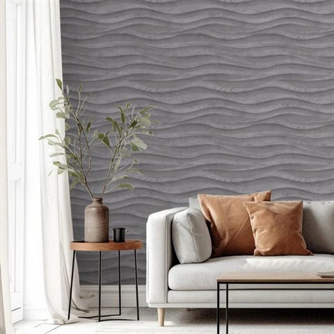 Natural Drift Wavy Wood Structure Dark Grey Wallpaper