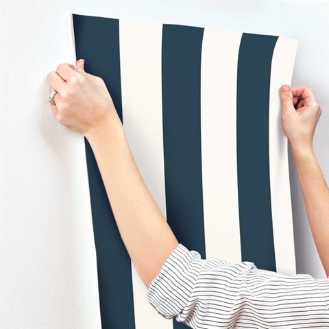 Pattern Name:Navy Blue Awning Stripe Wallpaper