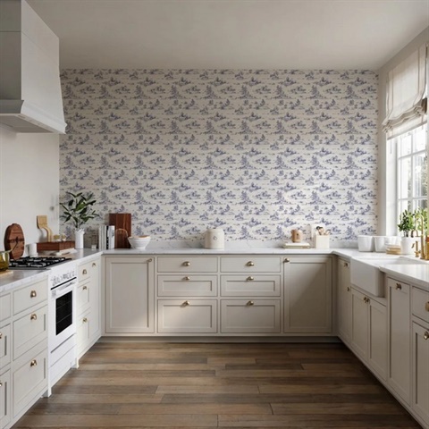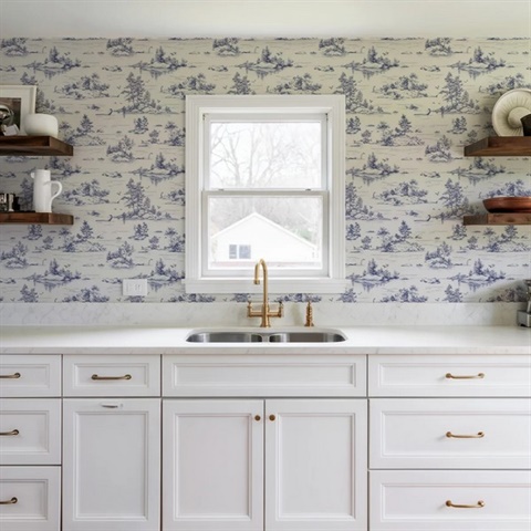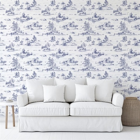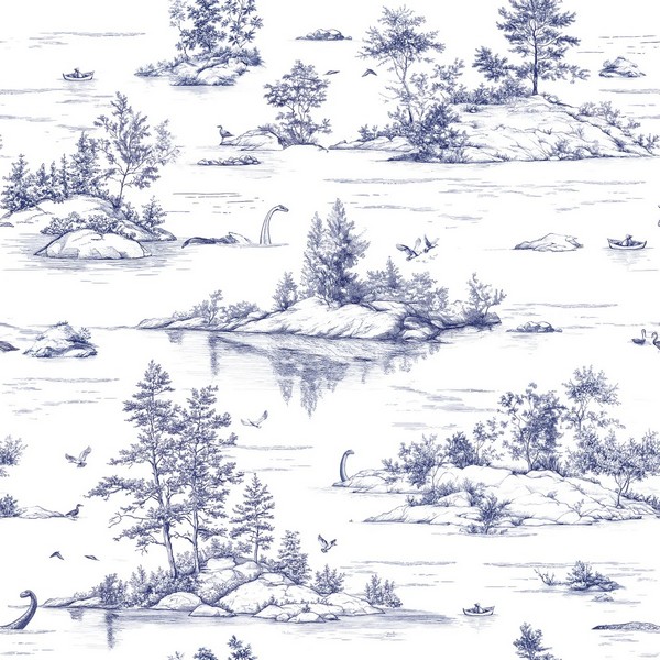 Pattern Name:Nessie Novelty Toile Blue Peel and Stick Wallpaper