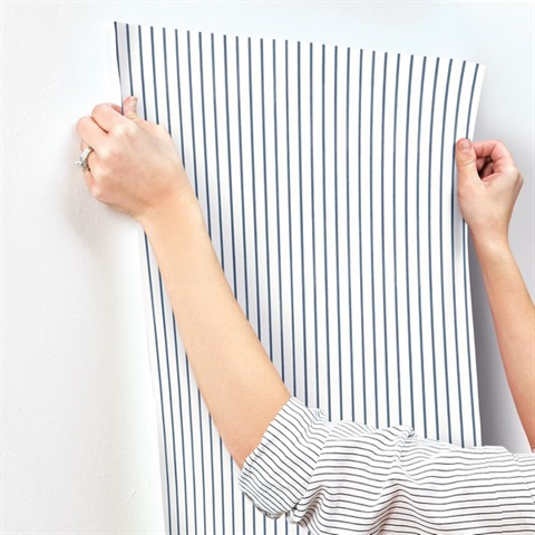 Pattern Name:Oliver Navy Simple Pinstripe Wallpaper