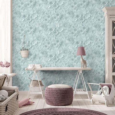 Paper Flowers Green Wallpaper