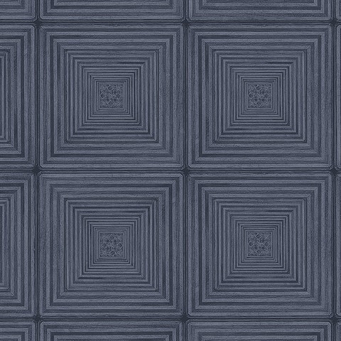 Pattern Name:Parquet Geometric Navy Blue Wood Squares Wallpaper