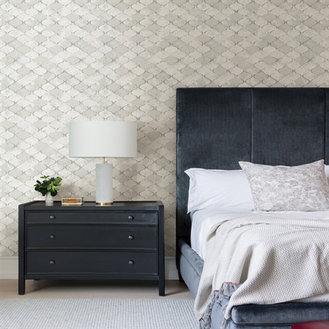 • Pattern Name: Pilak Silver Textured Foil Ogee Tile Wallpaper