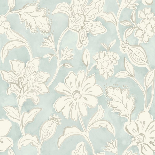Plumeria Aqua Floral Trail Large Watercolor Floral & Leaf Wallpaper