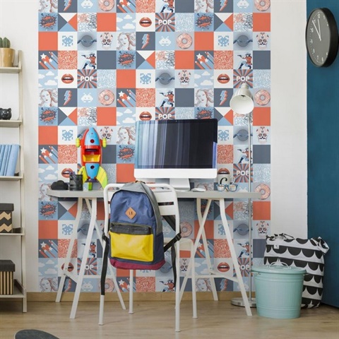 Pattern Name:Pop Art Patchwork Blue Wallpaper