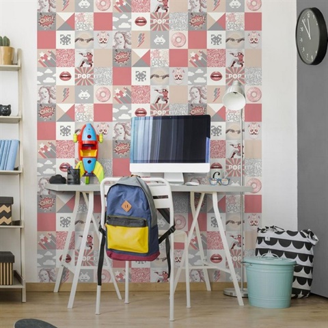 Pop Art Patchwork Pink Wallpaper