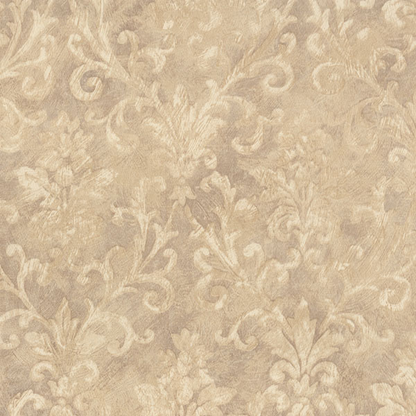 Pattern Name:Prospero Light Brown Damask Scroll Texture Wallpaper