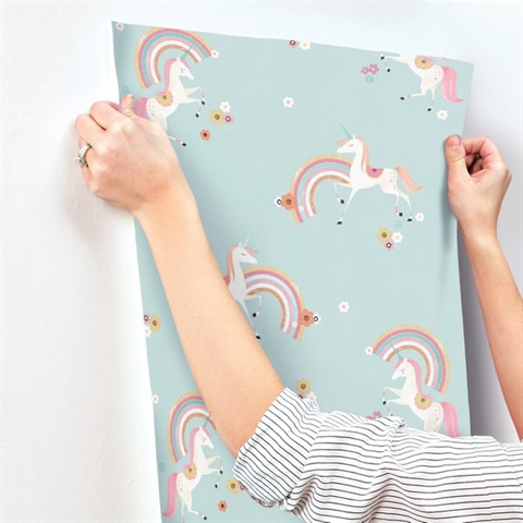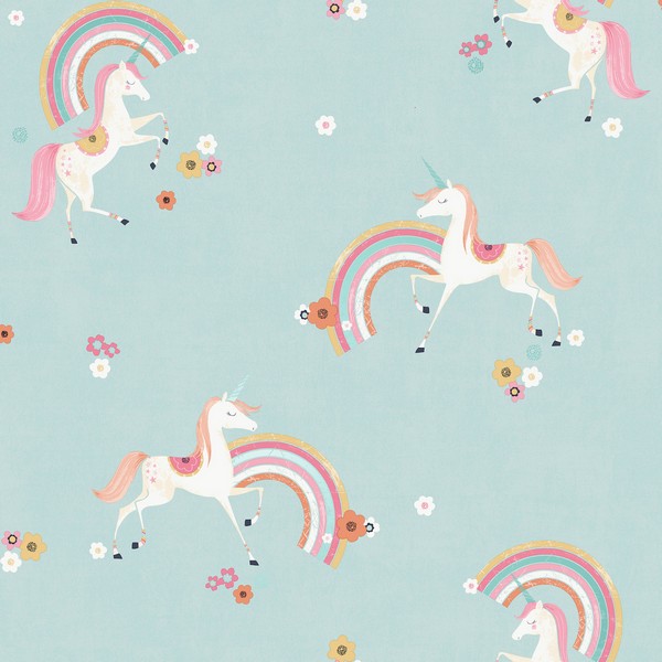 Pattern Name:Rainbow Unicorn Blue Fantastical Wallpaper