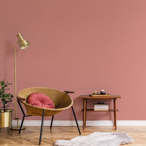 Red Medallion Quatrefoil Clover Wallpaper, G56663