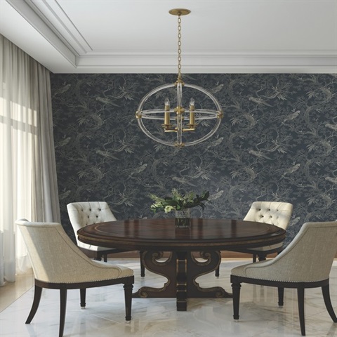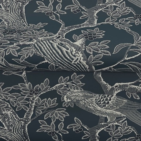 Regal Ridge Dark Blue Trailing Tree Wallpaper