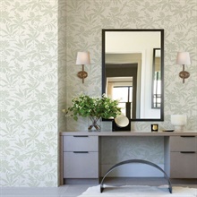Pattern Name:Riemann Green Floral Leaf Textured Wallpaper