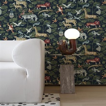Pattern Name:Rigby Navy Blue Jungle Animals Wallpaper