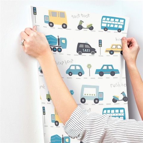 Pattern Name:Road Traffic Blue Cars Wallpaper