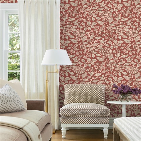 • Pattern Name: Rowen Ruby Botanical Block Floral Wallpaper