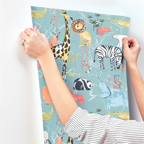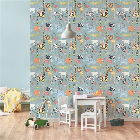 Pattern Name:Safari Animals Blue Jungle Friends Wallpaper
