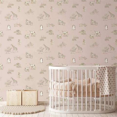 Pattern Name:Safari Babies Pink Animal Wallpaper