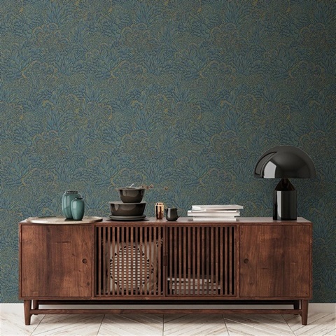 Samba Botanica Blue and Gold Wallpaper