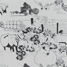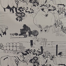 A busy farmyard scene. Made in England using traditional methods, by a small team of printers. All Belynda Sharples wallpapers are printed in short runs, ensuring great care is taken in all aspects of the process, with the direct involvement and oversight of both Robert and Belynda.