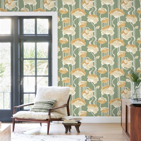 Shirley Green Deco Floral Peel & Stick Wallpaper
