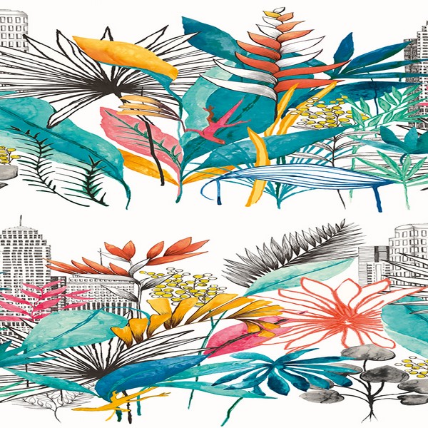 Pattern Name:Sierra Blue Urban Tropic Wallpaper