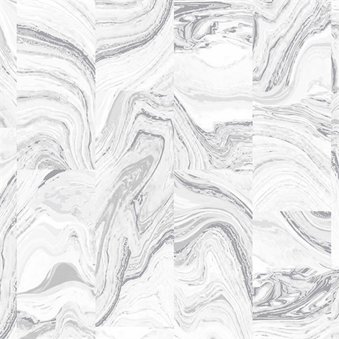 Silver & White Faux Marble Wallpaper (Smooth, Not Textured)