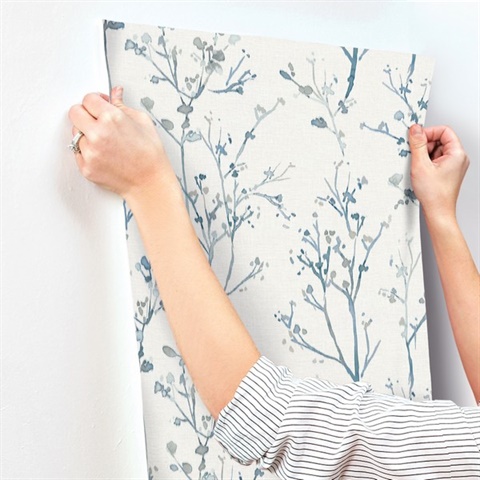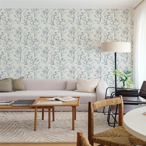 Pattern Name:Silverling Blue Budding Branches Wallpaper