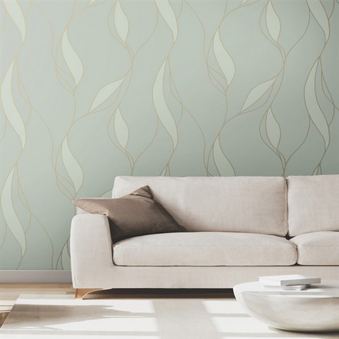 Society Hill Mint Abstract Leaf Wallpaper